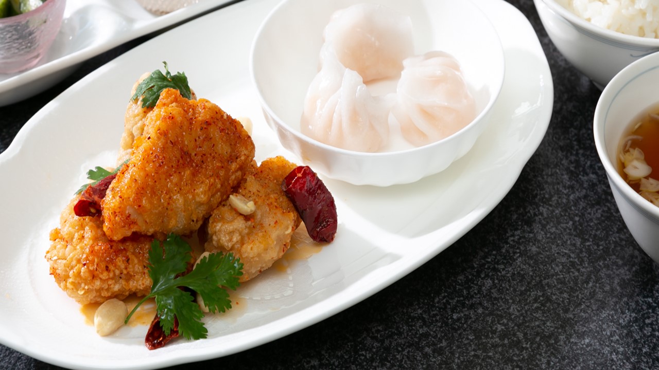 【Aセット】鶏唐揚げと海老蒸し餃子