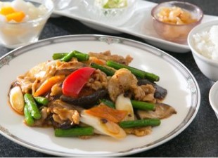 【Aセット】豚バラスライス肉と季節野菜の辛味ソース炒め