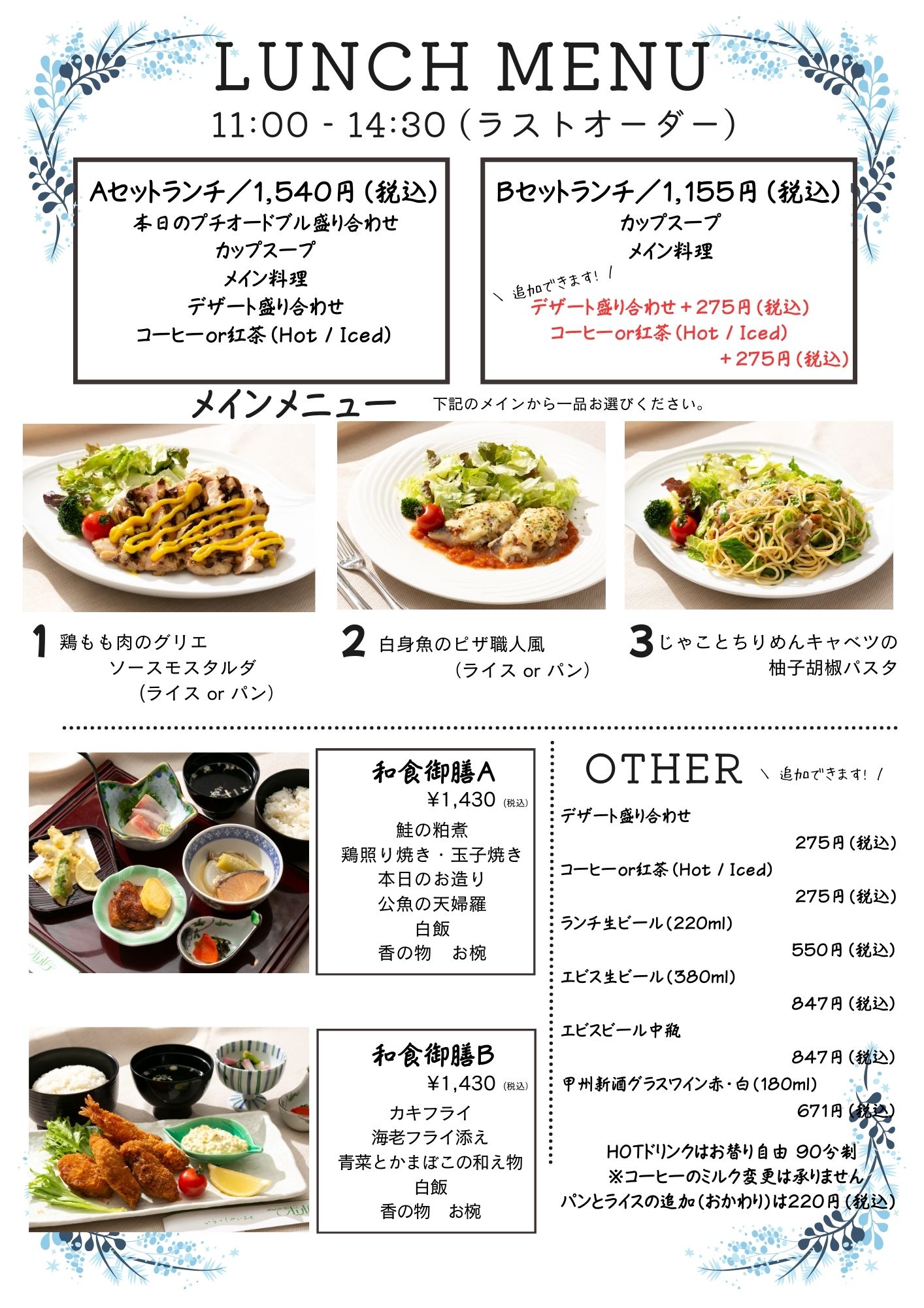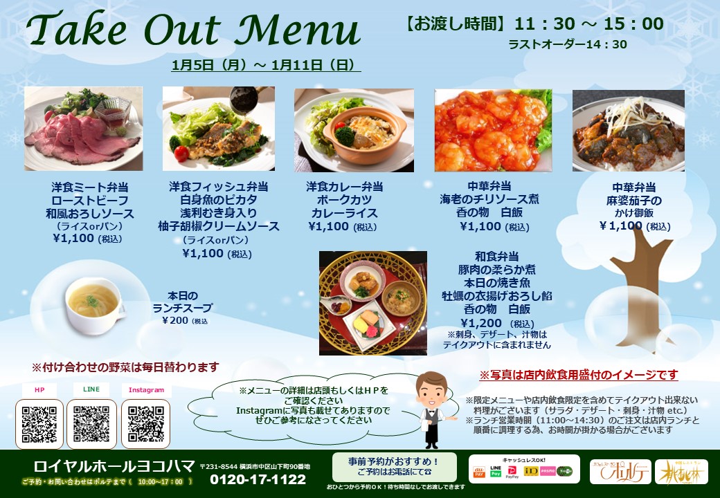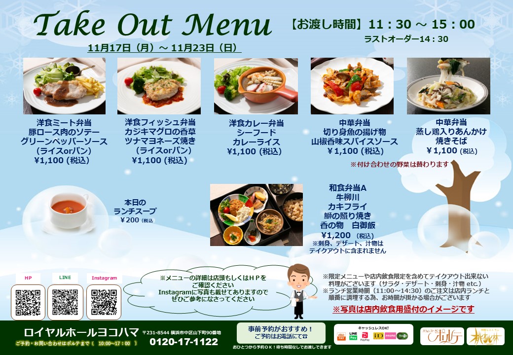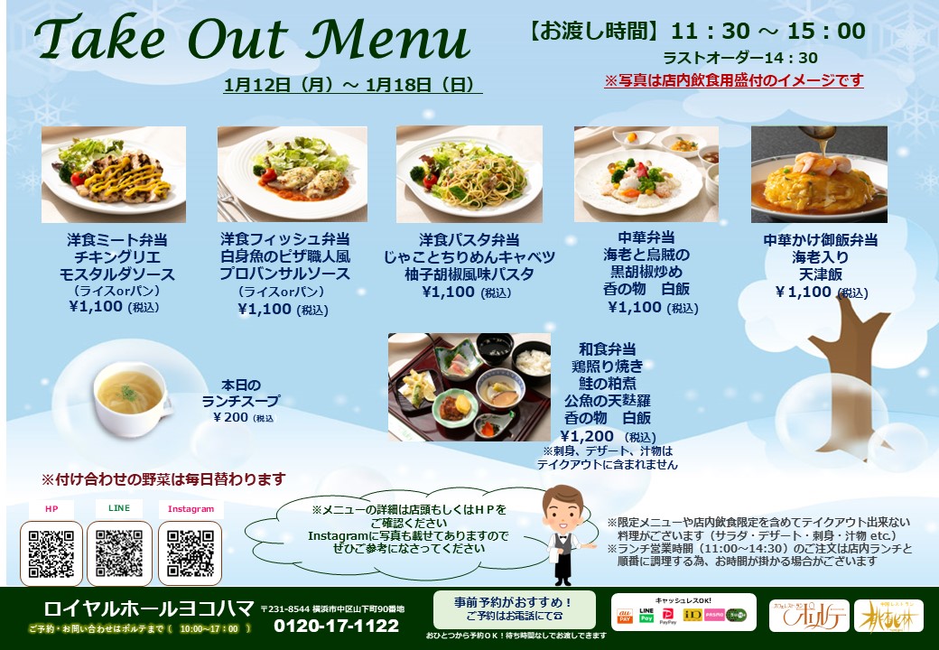 ※中華、和食ランチメニューは、テイクアウト用に一部内容の変更があります。