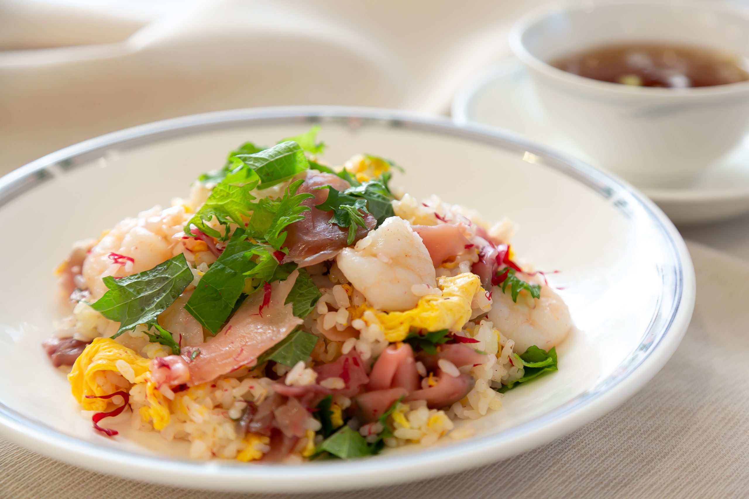 海老、梅搾菜、大葉入り炒飯(スープ付き)