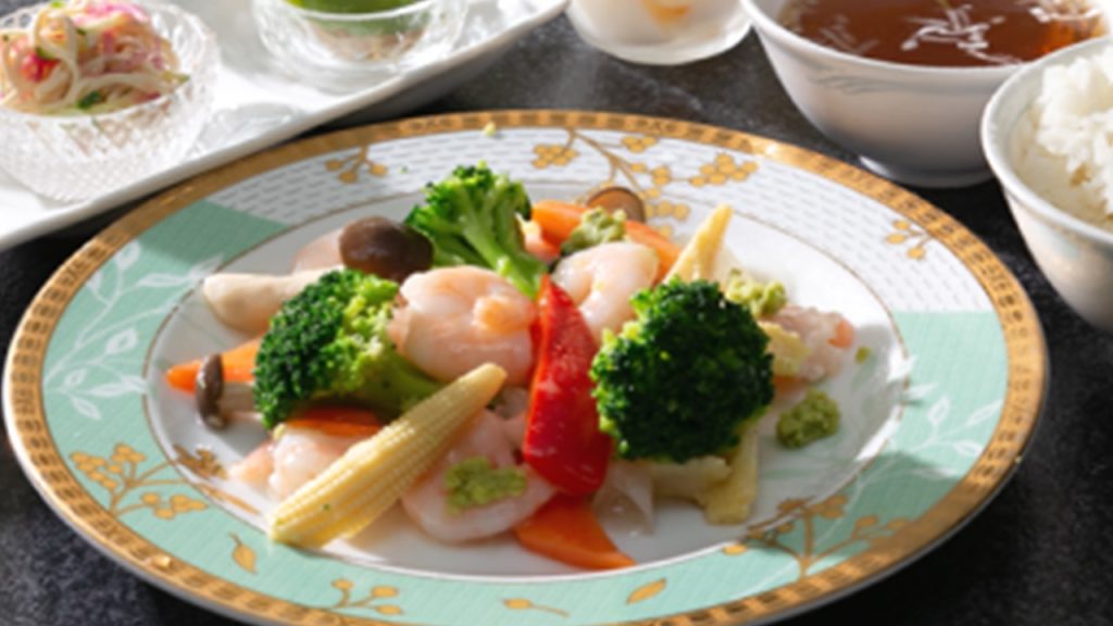 【Aセット】海老と彩り野菜の塩味炒め