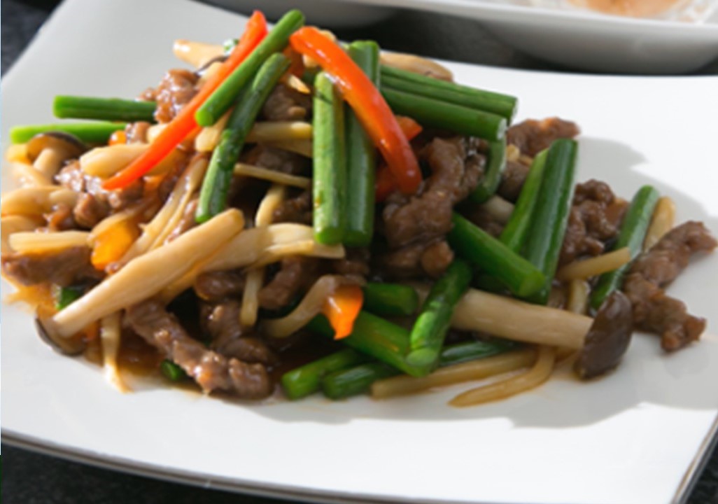 【Aセット】細切り牛肉とニンニクの芽のガーリック黒胡椒炒め